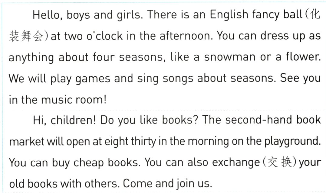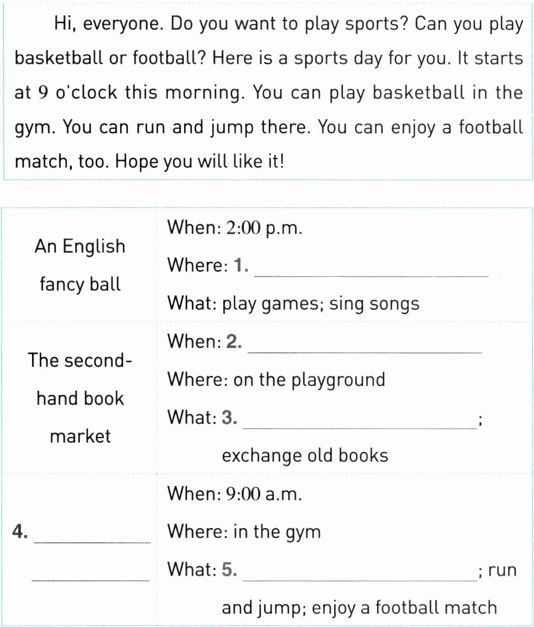 (一)新形式.广播稿)Tiantian是校园广播站的播报员,以下是他播报的一些校园活动。请阅读Tiantian的播报稿,补全表格。(10分)