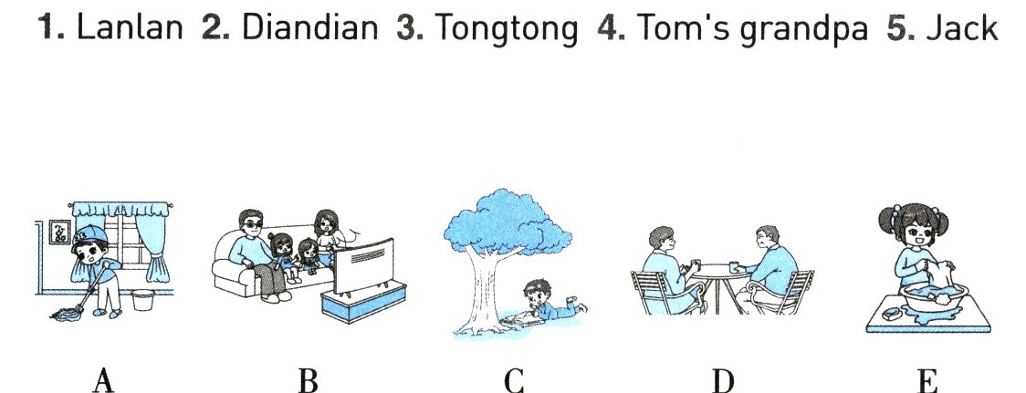 二听句子,将人物与对应的活动连线。(5分)