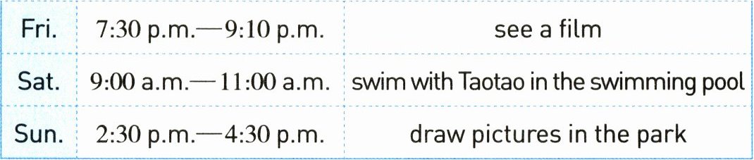 任务一:根据日程表内容填空,补全Tom的介绍。(7分)