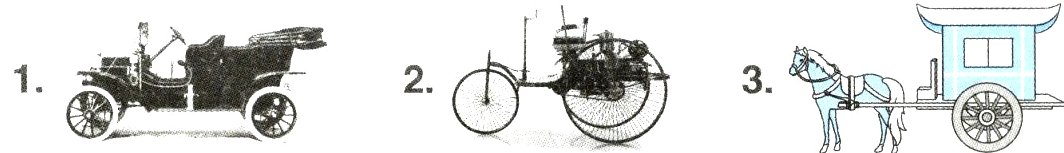 ( )2. The first car had two wheels at the back and one wheel at the front.