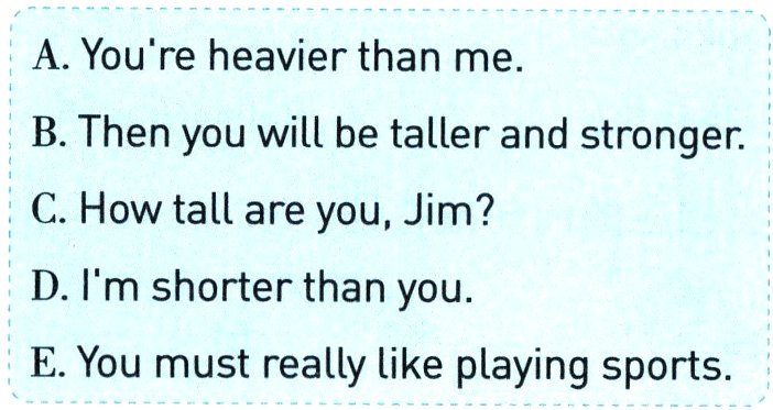 Jim:4. You are heavier than me. I'm 51 kilograms. Do you often do exercise?