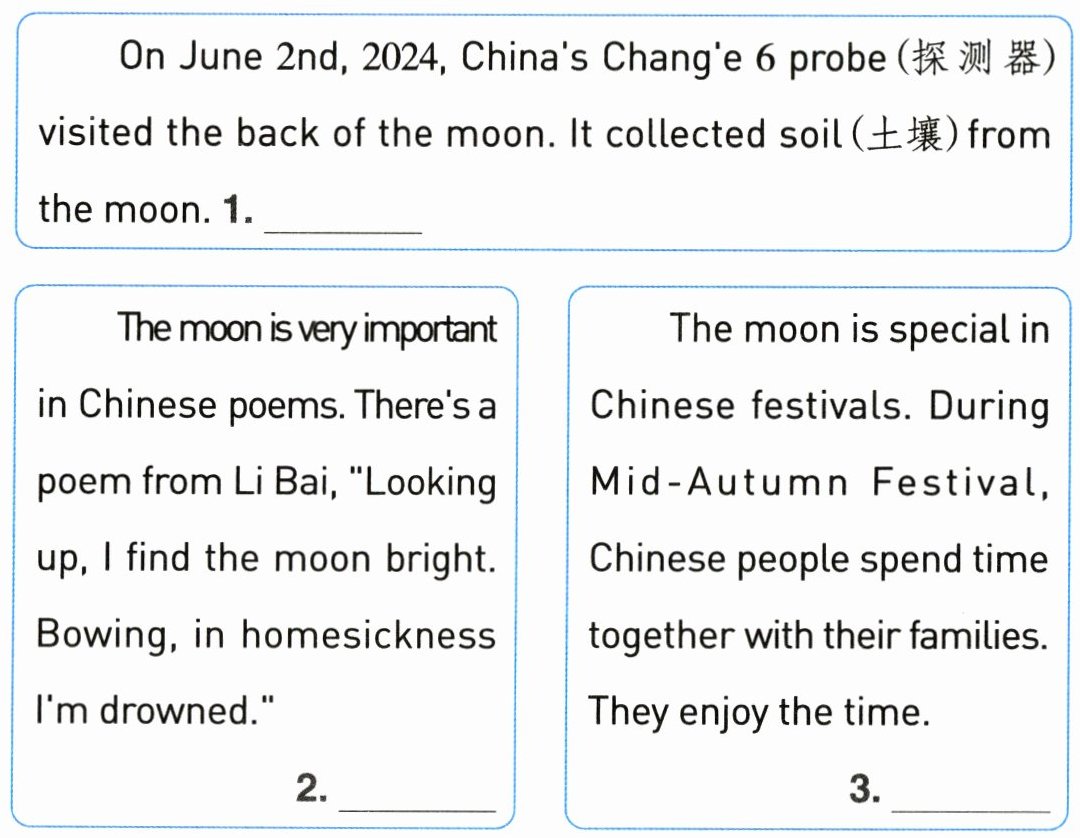 ______________________________2.When didthe Chang'e6probevisitthe back ofthe moon?______________________________3.How could the farmers know the weather well in ancient