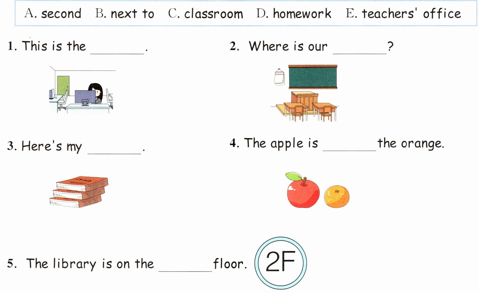 ( )2. Is it next to Classroom 3? B. It's on the second floor.