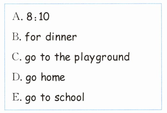 ( )4. It's time for ________.