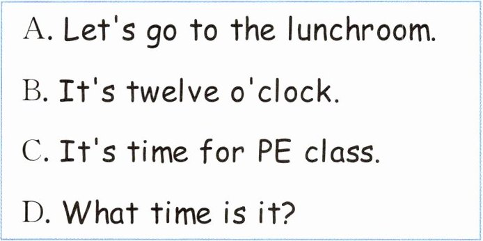 John:It's nine o'clock. A. Let's go to the lunchroom.