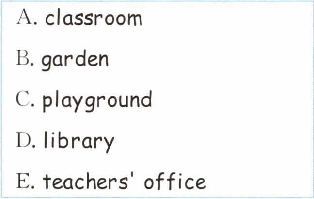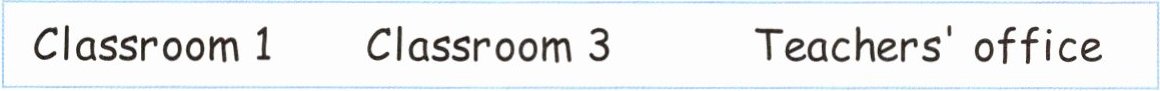 1. Classroom 3 2. Teachers’ office 3. Classroom 1 4. F 5. T