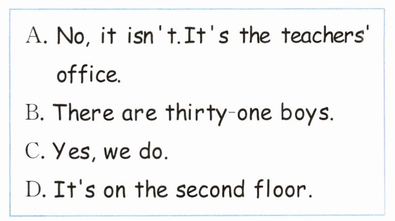 ( )3. Where is the teachers' office?