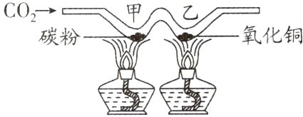B 解析:二氧化碳和碳粉在高温条件下反应生成一氧化碳,甲处的碳粉减少。一氧化碳还原氧化铜生成铜,黑色固体逐渐变成红色。所以实验时甲、乙两处黑色固体都减少,A正确;甲处二氧化碳和碳粉两种物质反应只生成一氧化碳,发生的是化合反应,B错误;该实验的尾气中会有残留的一氧化碳气体,一氧化碳气体有毒,所以要进行尾气处理,C正确;实验中碳粉能将二氧化碳还原为一氧化碳,一氧化碳能将氧化铜还原成单质铜,碳粉和一氧化碳均具有还原性,D正确。