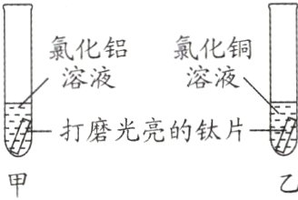 4. 为探究钛合金中钛、铝、铜三种金属的活动性顺序,同学们做了如图所示的实验,发现甲试管中钛无明显变化,乙试管中钛片表面有红色固体出现,则三种金属的活动性由强到弱的顺序是 ( )