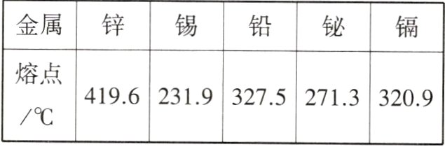 (2)①横坐标质量分数为零时熔点要比质量分数为100%时熔点高,因为铅的熔点比锡的熔点高,所以横坐标表示锡的质量分数;合金熔点最低时锡占60%,所以铅占40%,合金中锡与铅的质量比为60% : 40% = 3 : 2。②合金的熔点比它的组分金属熔点要低,铋、铅、锡、镉四种金属中熔点最低是231.9℃,所以要选择熔点比231.9℃低,且不能很低,必须要高于室温,故选B。