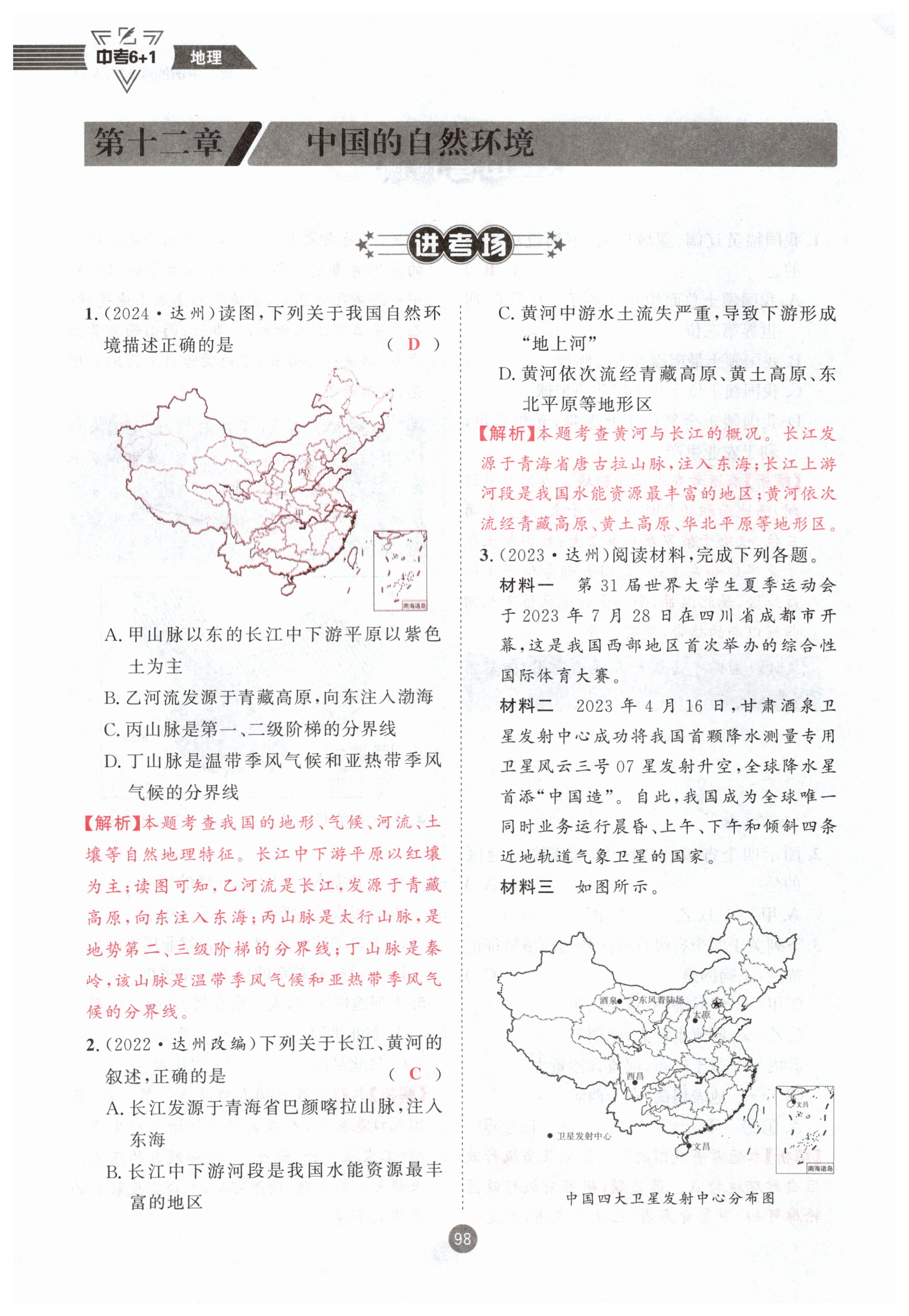 注:目前有些书本章节名称可能整理的还不是很完善,但都是按照顺序排列的,请同学们按照顺序仔细查找。练习册 2025年中考6加1地理商务星球版达州专版 答案主要是用来给同学们做完题方便对答案用的,请勿直接抄袭。