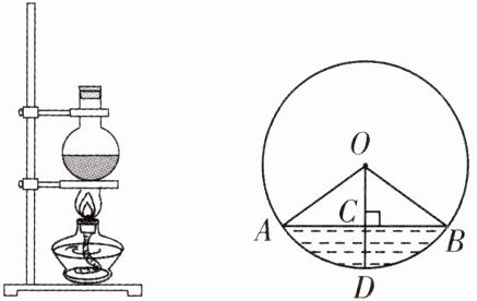 7. [学科融合] 如图,一个底部呈球形的烧瓶,瓶内液体的最大深度 $CD = 2$ cm,截面圆中弦 AB 长为 10 cm,那么圆的半径 OB 长为 .