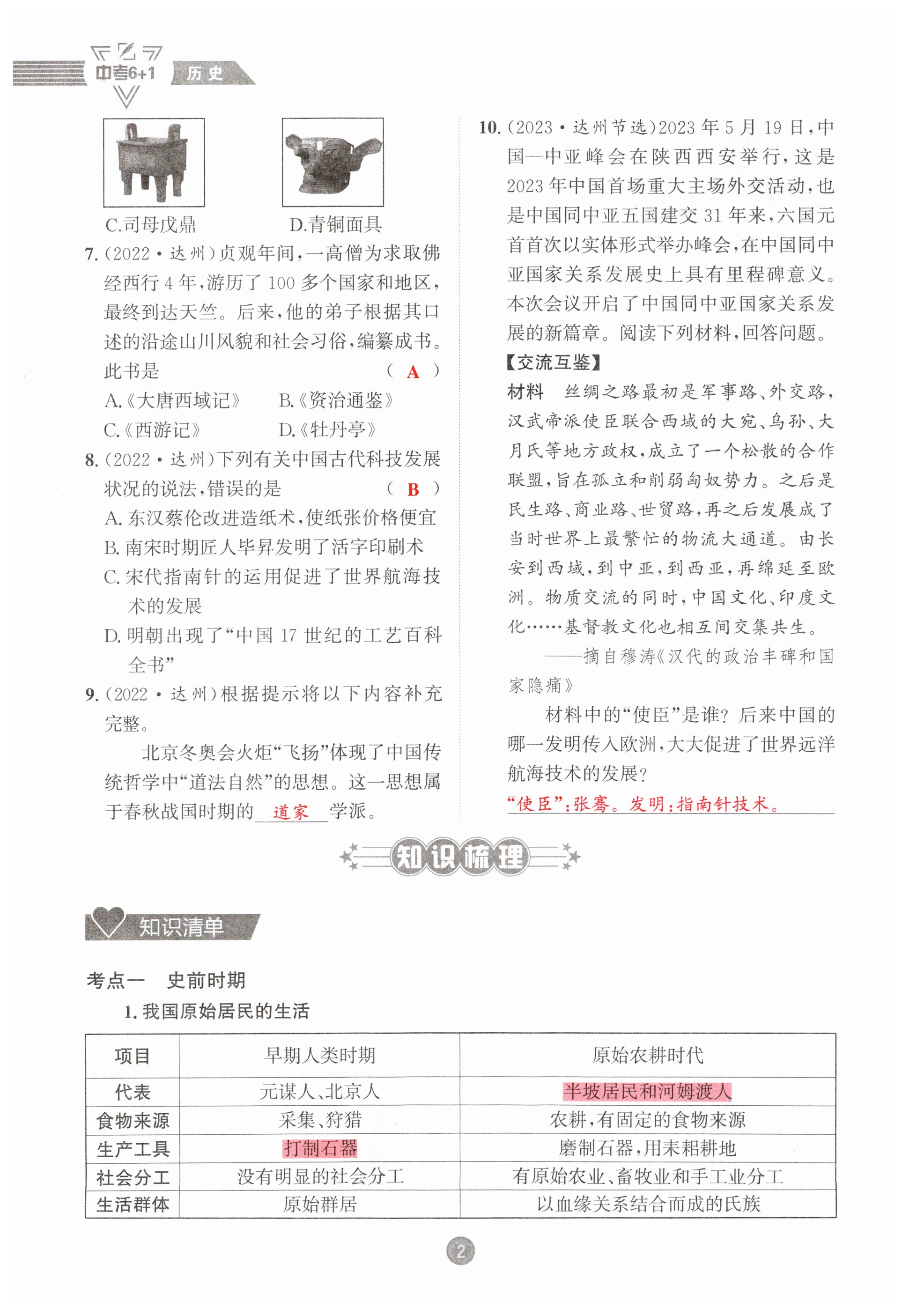 2025年中考6加1历史达州专版