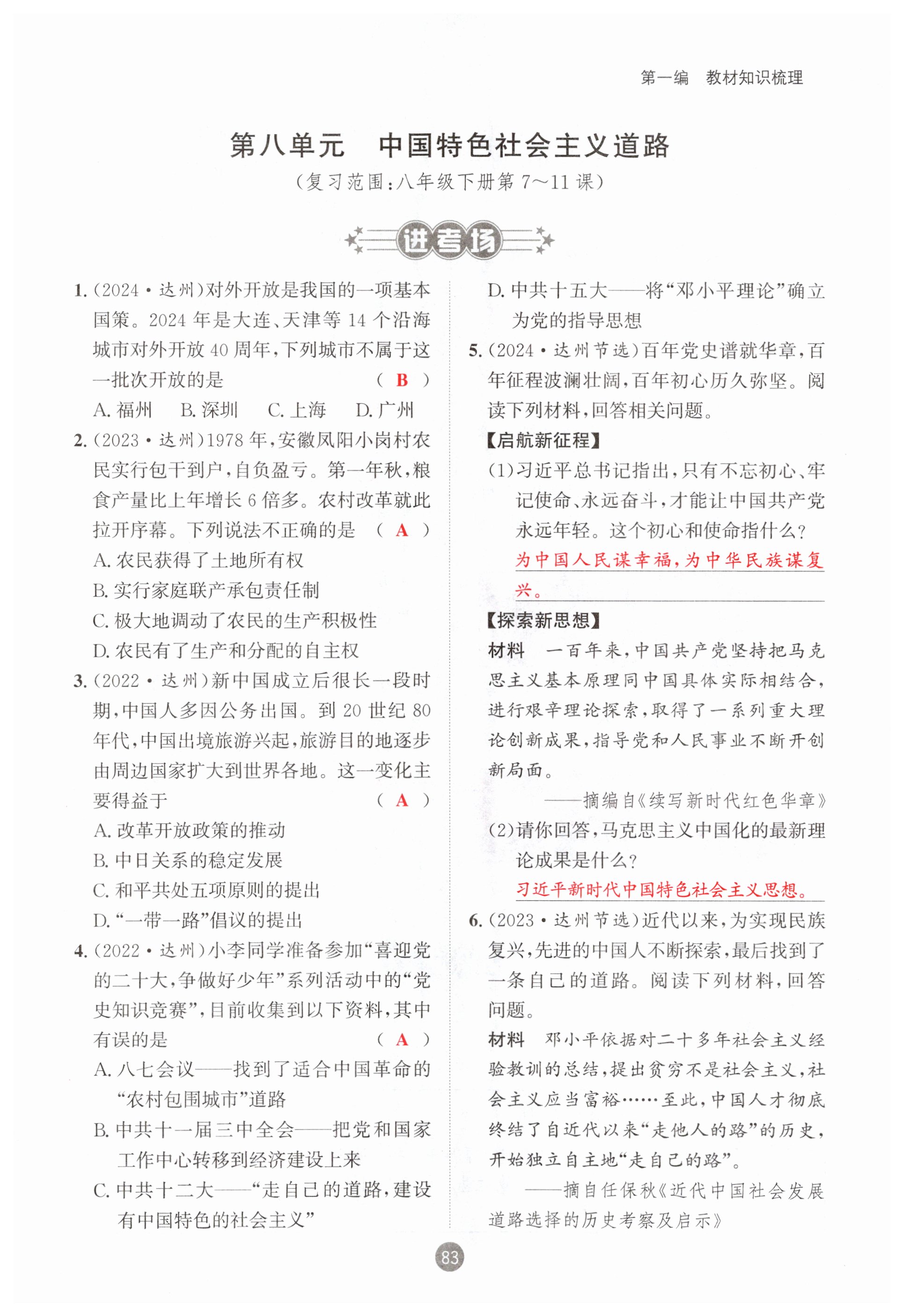 注:目前有些书本章节名称可能整理的还不是很完善,但都是按照顺序排列的,请同学们按照顺序仔细查找。练习册 2025年中考6加1历史达州专版 答案主要是用来给同学们做完题方便对答案用的,请勿直接抄袭。