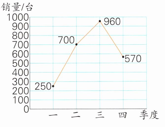 (1)第( )季度销量最高,卖出( )台。