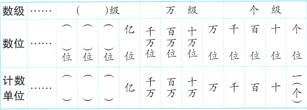 2. (1)与亿位相邻的两个数位分别是( )和( )。