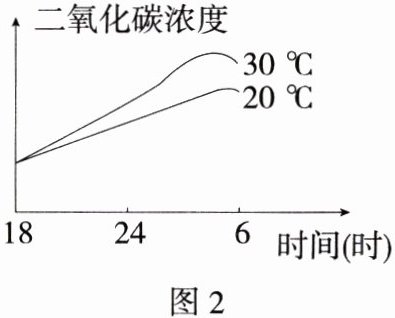 D. 分析图 2,夜间温度为 20 ℃时草莓消耗的有机物比夜间温度为 30 ℃时草莓消耗的有机物多