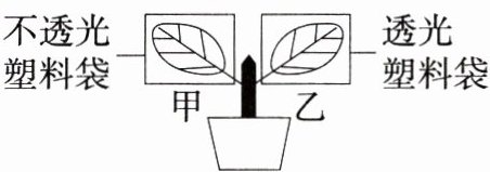7. [探究实践题·设计对照实验](2023 山东枣庄中考,4,★☆☆)生物兴趣小组的同学选择某盆栽植物上的两片大小和长势相同的叶子,标记为甲和乙,然后分别用大小相同的不透光和透光的塑料袋密封,如图所示。该实验能得出 ( )