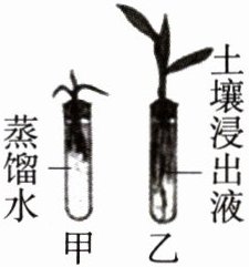 B@@蒸馏水中没有无机盐,在蒸馏水中培养的幼苗弱小;土壤浸出液中含有无机盐,在土壤浸出液中培养的幼苗生长健壮。由此证明,植物的生长需要无机盐。