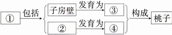 8.识图分析题·概念图 (2024山东博兴期中,6,★☆☆)如图是某同学梳理出的桃的果实和种子形成概念图,他遮挡住了部分内容,①②③④分别表示 ( )
