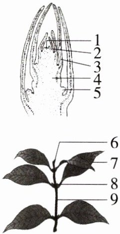 8.识图分析题·结构图 (2024山东菏泽中考)如图是叶芽及其发育成的枝条结构示意图,图中1~9代表相应结构。下列说法错误的是 ( )