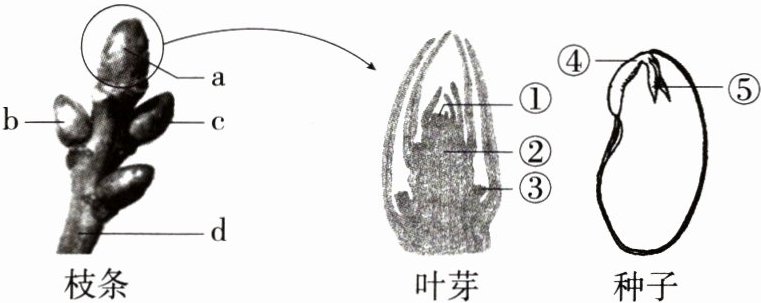 13. 识图分析题·结构图(2024 山东金乡期中)下列关于如图所示枝条、叶芽和种子结构的叙述,错误的是( )