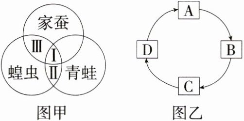 C.图乙表示家蚕的发育过程,若 B 是幼虫,则 D 是成虫