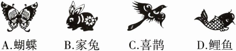 5.(中华传统文化·剪纸)(2023 河南中考)剪纸是我国历史悠久的民间艺术。实践课上,同学们创作了动物剪纸作品。下列作品所代表的动物的生殖方式与其他三种不同的是 ( )