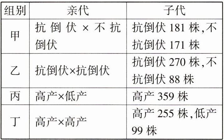 (5) 如表是小麦的两组相对性状杂交后的遗传实验结果, 抗倒伏、不抗倒伏的基因用 A、a 表示, 高产、低产的基因用 B、b 表示, 请分析回答有关问题: