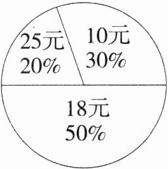 5. (2024山东青岛莱西一模)某餐厅供应单价为10元、18元、25元三种价格的盒饭,如图所示的是该餐厅某月三种盒饭销售情况的扇形统计图,根据该统计图可算得该餐厅这个月销售盒饭的平均单价为(M7207003)( )