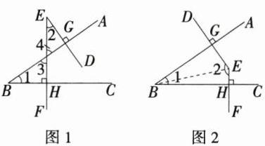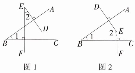 (2)如图2,AB⊥DE,BC⊥EF,则∠1与∠2的数量关系是_______________. 说明理由.