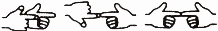 10.(2022青海中考,6,★☆☆)数学课上老师用双手形象地表示了“三线八角”图形,如图所示(两大拇指代表被截直线,食指代表截线).从左至右依次表示(M7208003) ( )