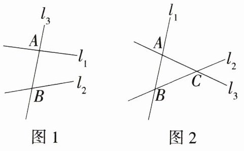 (2) 平面内三条直线 l₁,l₂,l₃ 两两相交,交点分别为 A、B、C,题图中一共有 6 = 3×2×1 对同旁内角.