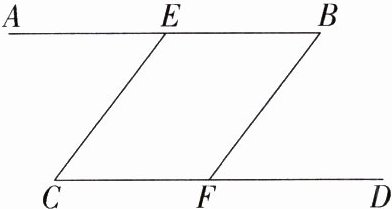 解析:因为∠A = ∠ECF,所以 AB//CE(同位角相等,两直线平行)。(答案不唯一)