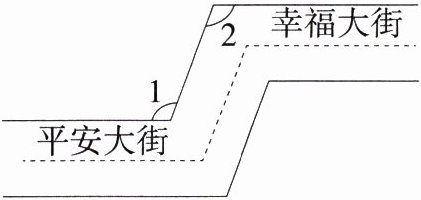 B:因为∠1 和∠2 是内错角,∠1 = ∠2,所以幸福大街与平安大街互相平行,依据是内错角相等,两直线平行。故选 B。