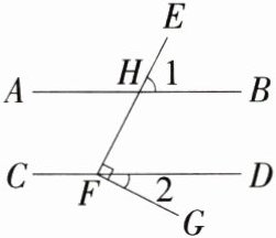 13.(2024广西防城港期末,24,★★☆)如图,EF⊥FG,垂足为F,且点F在直线CD上,FE与直线AB相交于点H,∠1 + ∠2 = 90°. 求证:AB//CD.(请完成下面的证明过程)