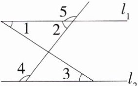 12.(2024辽宁丹东东港期末,8,★☆☆)如图,下列条件:①∠1 = ∠3,②∠2 = ∠3,③∠4 = ∠5,④∠2 + ∠4 = 180°中,能判定直线l₁//l₂的有 ( )