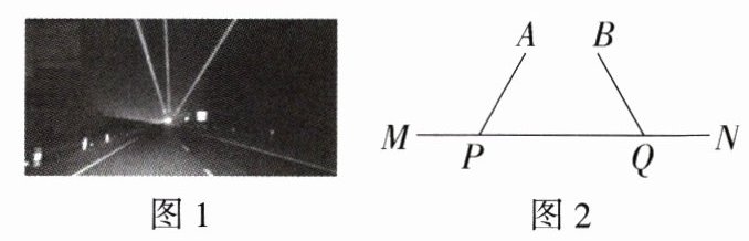 15.情境题·生命安全与健康 (2023山东德州期中,16,★★☆)为了提醒司机不要疲劳驾驶,高速公路上安装了如图1所示的激光灯,图2是激光位于初始位置时的平面示意图,其中P,Q是直线MN上的两个发射点,∠APQ = ∠BQP = 60°,现激光PA绕点P以每秒3度的速度逆时针旋转,同时激光QB绕点Q以每秒2度的速度顺时针旋转,设旋转时间为t(0≤t≤40)秒,当PA//QB时,t的值为________.