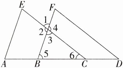 解析 添加∠5 = ∠A,可根据“同位角相等,两直线平行”判定AE//BF。(答案不唯一)