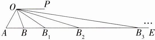 16. (2024山东潍坊安丘期中)如图,已知射线$OP// AE$,$\angle A = \alpha$,依次作出$\angle AOP$的平分线$OB$,$\angle BOP$的平分线$OB_1$,$\angle B_1OP$的平分线$OB_2$,……,$\angle B_{n - 1}OP$的平分线$OB_n$,其中点$B$,$B_1$,$B_2$,…,$B_n$都在射线$AE$上,则$\angle AB_{2024}O =$________.