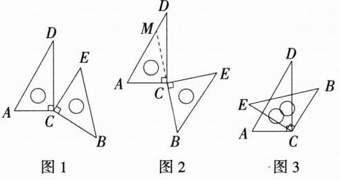 ∴ ∠ACE = 90° + 30° = 120°。 ②如图2,当AD//BE时,延长BC交AD于点M,则∠AMC = ∠B = 45°,∠MCE = 90°,