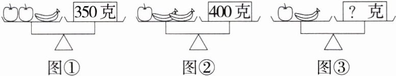16. 新考法·天平与二元一次方程组 (2024吉林长春德惠月考,13,★★☆)如图,在天平上放了苹果和香蕉,其中图①、图②的天平保持平衡,现要使图③中的天平也保持平衡,需要在天平右盘中放入________克砝码.