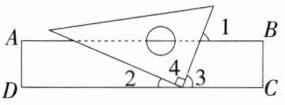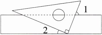 5.(2023内蒙古呼和浩特中考)如图,直角三角尺的直角顶点落在长方形纸片的一边上.若∠1 = 68°,则∠2的度数是 ( )