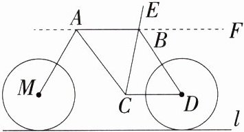 9.(2024广东广州天河期末改编)某自行车的示意图如图所示,其中AB//CD,且都与地面l平行,若∠BAC = ∠ABC = 60°,则下列结论不正确的是 ( )