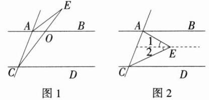 (2)如图 2,过 E 作 AB 的平行线,由 AB//CD,可得∠1 = ∠BAE = α,∠2 = ∠DCE = β,