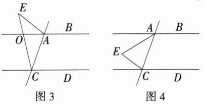 (3)如图 3,由 AB//CD,可得∠BOE = ∠DCE = β,
