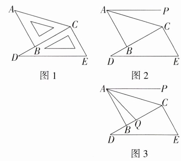 22.[答案含评分细则](2022湖北武汉青山期末)(12分)小聪把一副三角尺按如图1所示的方式摆放,其中边BC,DC在同一条直线上,过点A向右作射线AP,且AP//DE.