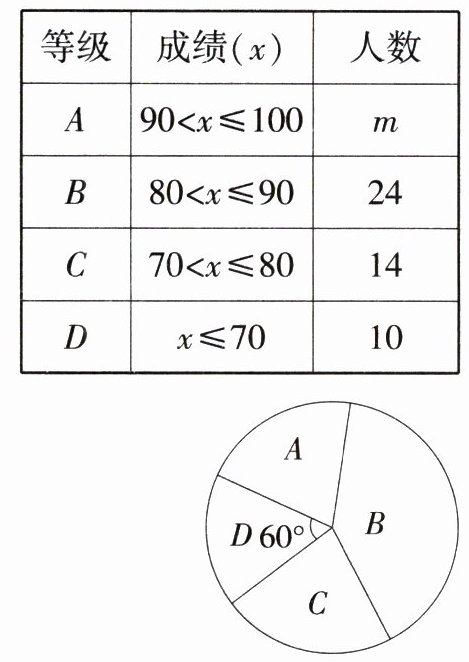 (1)表中m = _______,扇形统计图中,B等级所占百分比是_______,C等级对应的扇形圆心角为_______度.
