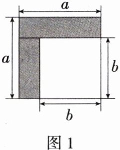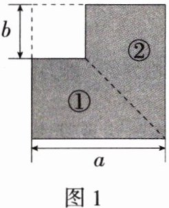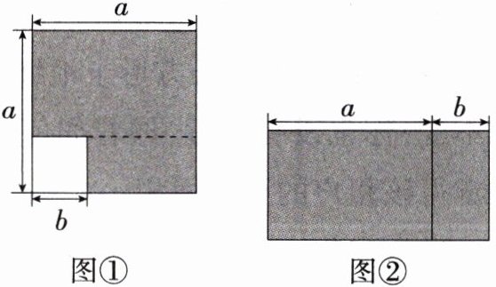 例题 将边长为a的正方形的左上角剪掉一个边长为b的正方形(如图1),将剩下部分按照虚线分割成①和②两部分,将①和②两部分拼成一个长方形(如图2),解答下列问题: