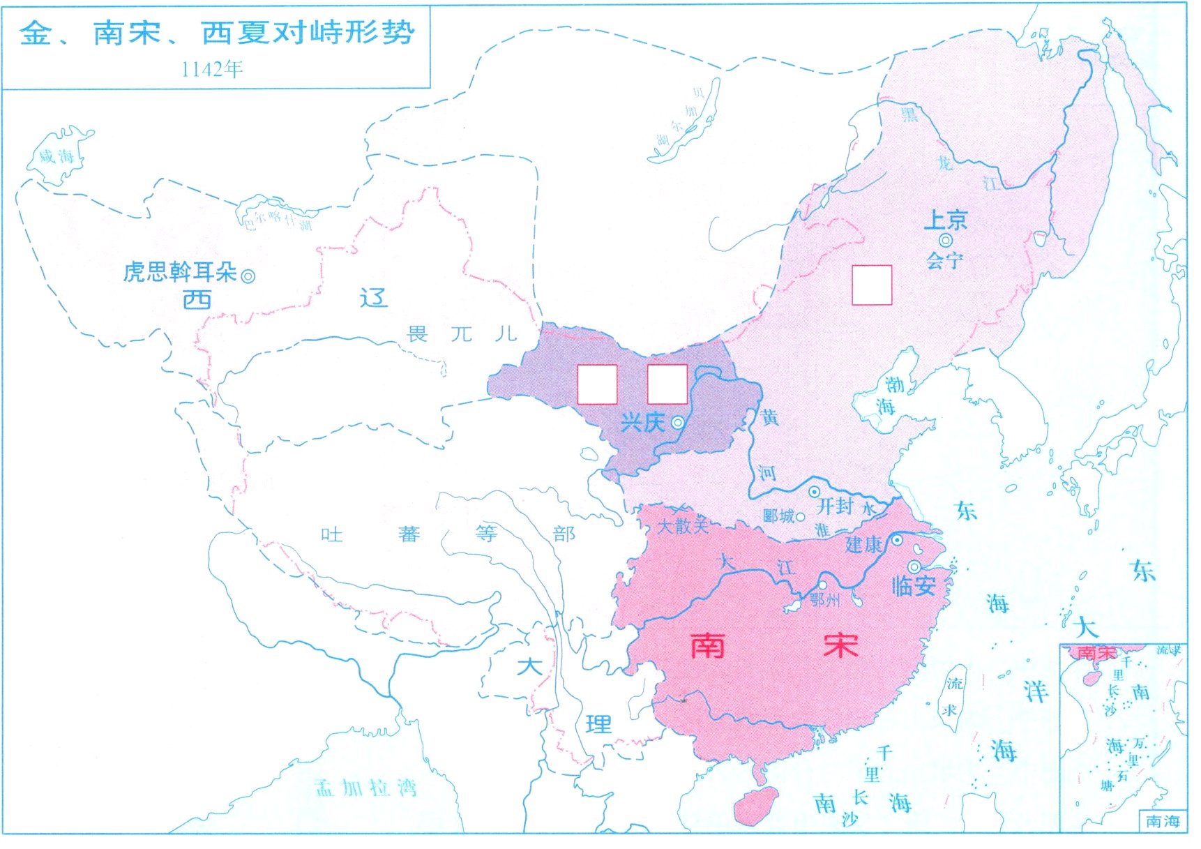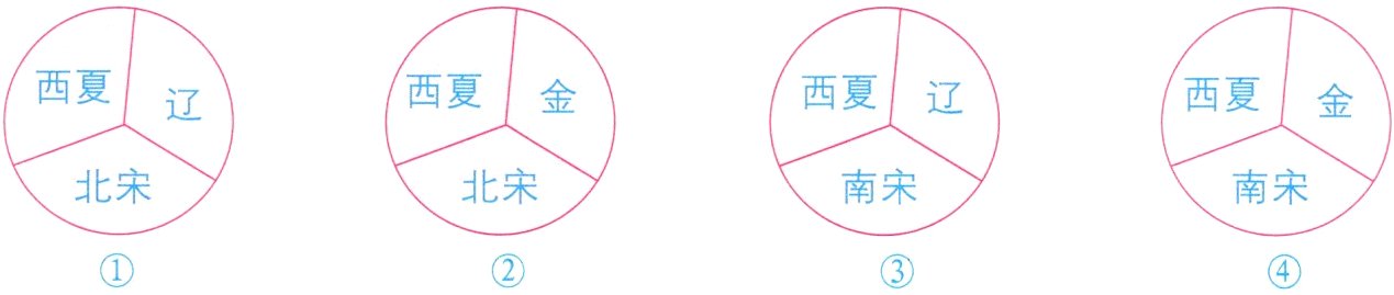 3. 下列四幅示意图中正确反映出两宋时期民族政权并立状况的是( )